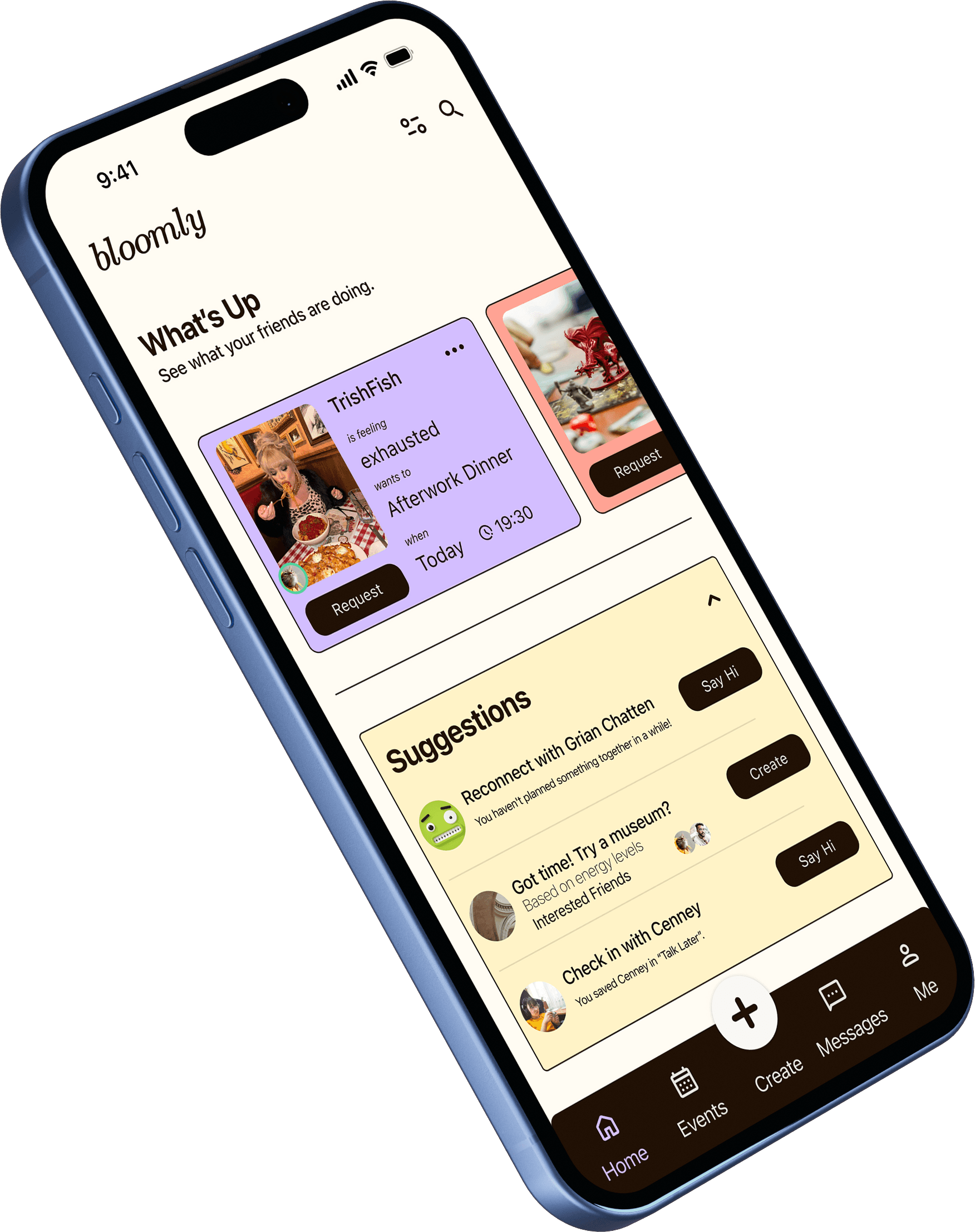 Design an app that helps adults rekindle genuine friendships offline — without the pressure of dating or the chaos of large social platforms. Bloomly encourages small, meaningful meetups through gentle prompts and shared routines, turning online connection into real‑world belonging.